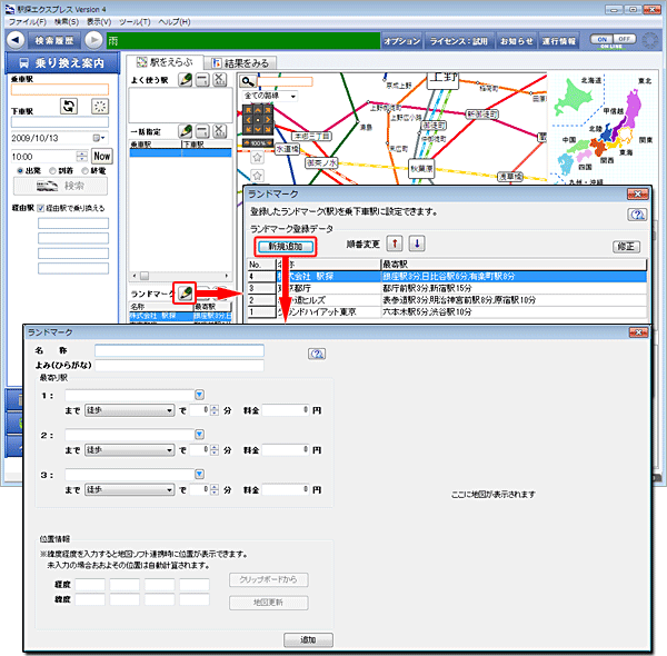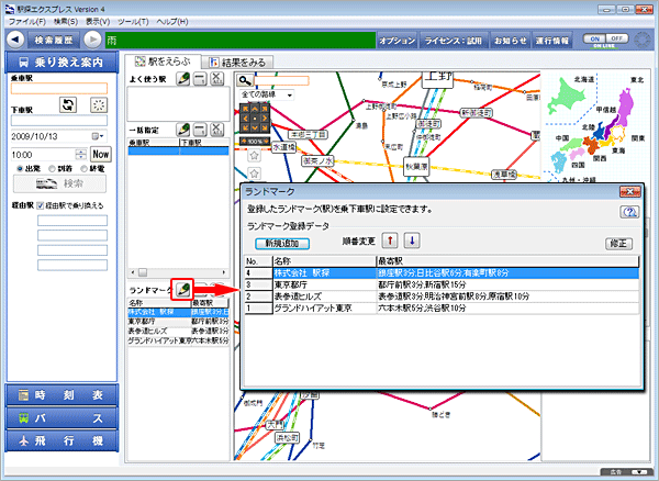 - [乗車駅]か[下車駅]にカーソルがある状態でランドマークをダブルクリックしてください。