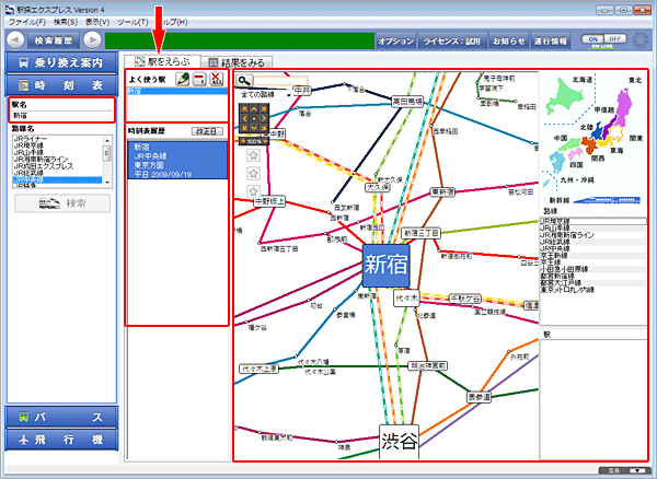 - 路線図に表示された駅をダブルクリックすることにより、駅名を入力することができます。